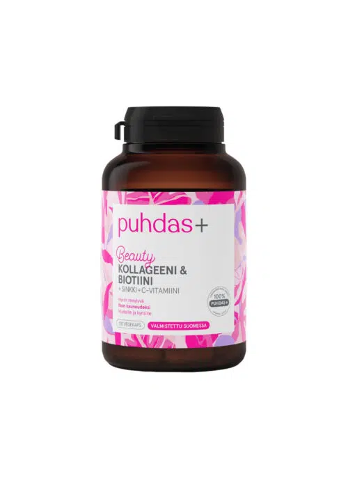 „Puhdas+ Collagen & Biotin“ yra 100 % grynas ir aukštos kokybės maisto papildas, kurio sudėtyje yra lengvai įsisavinamo hidrolizuoto žuvų kolageno, biotino, cinko ir vitamino C. Ši unikali sudėtis palaiko odos elastingumą, plaukų ir nagų stiprumą bei padeda išlaikyti jaunatvišką išvaizdą. Produktas pagamintas Suomijoje, laikantis aukštų kokybės standartų, jame nėra konservantų, dažiklių ar kitų priedų.