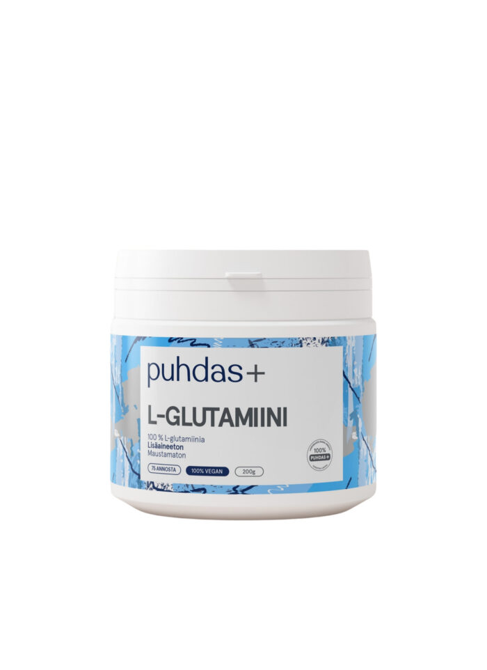 Puhdas+ L-glutamiin 200 g on 100% puhas glutamiinipulber, mis toetab lihaste taastumist, seedetrakti heaolu ja organismi รผldist tasakaalu. Glutamiin on kehas enim esinev aminohape, mille vajadus vรตib suureneda fรผรผsilise koormuse vรตi stressiperioodidel. See osaleb lihaste ja soolestiku rakkude uuenemise protsessides ning aitab kaasa organismi normaalsele toimimisele. Pulbrit on lihtne kasutada โ sega veega, mahlaga vรตi lisa smuutile. Sobib suurepรคraselt sportlastele, aktiivsetele inimestele ning kรตigile, kes soovivad toetada oma รผldist heaolu puhta ja loodusliku toidulisandiga. Toode ei sisalda lisaaineid, gluteeni, laktoosi ega magusaineid ning sobib ka veganitele.